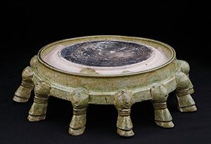 Large pottery inkstone in green glaze with hoof-shaped legs (piyongyan), Northern Qi dynasty (550-577)