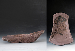 唐陶箕形硯附唐墨一块