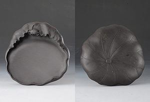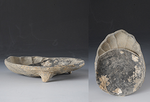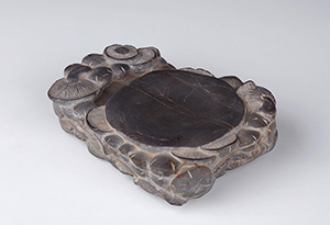 Grey pottery lotus flower head shaped inkstone, Tang dynasty (618-907)