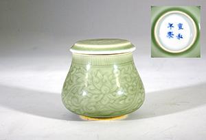 清康熙冬青釉瓷刻花卉紋原蓋水盂