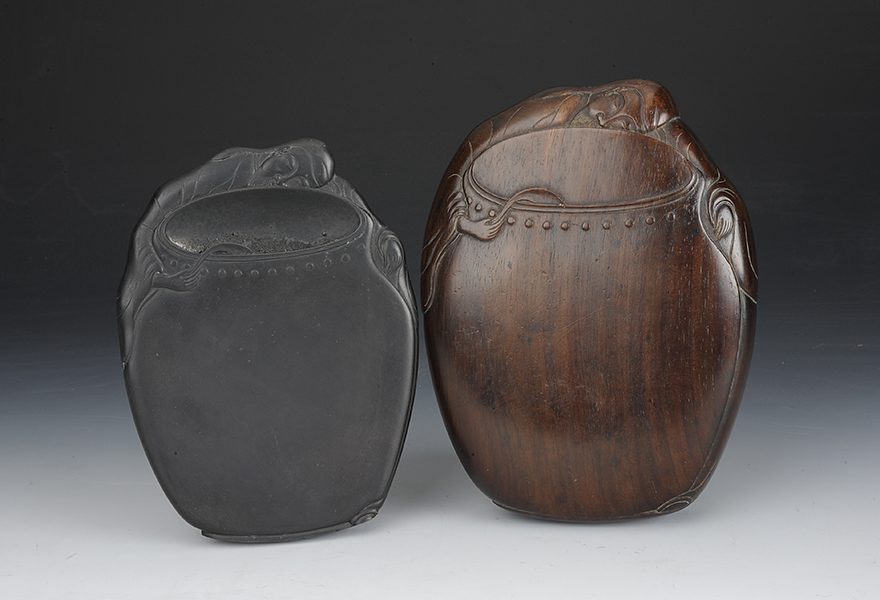 Pair of duan inkstones inscribed with seal of zhu cha, Qing dynasty (1644-1911), with blackwood case