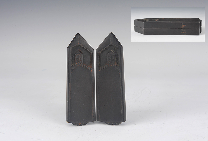 清端石「竹垞」印圭形對硯 附酸枝木盒