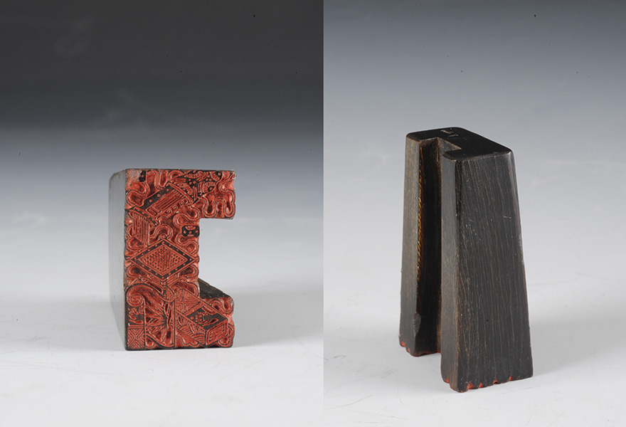 Ox horn seal carved with images of “The Four Treasures of Scholar Objects”, Qing dynasty (1644-1911)